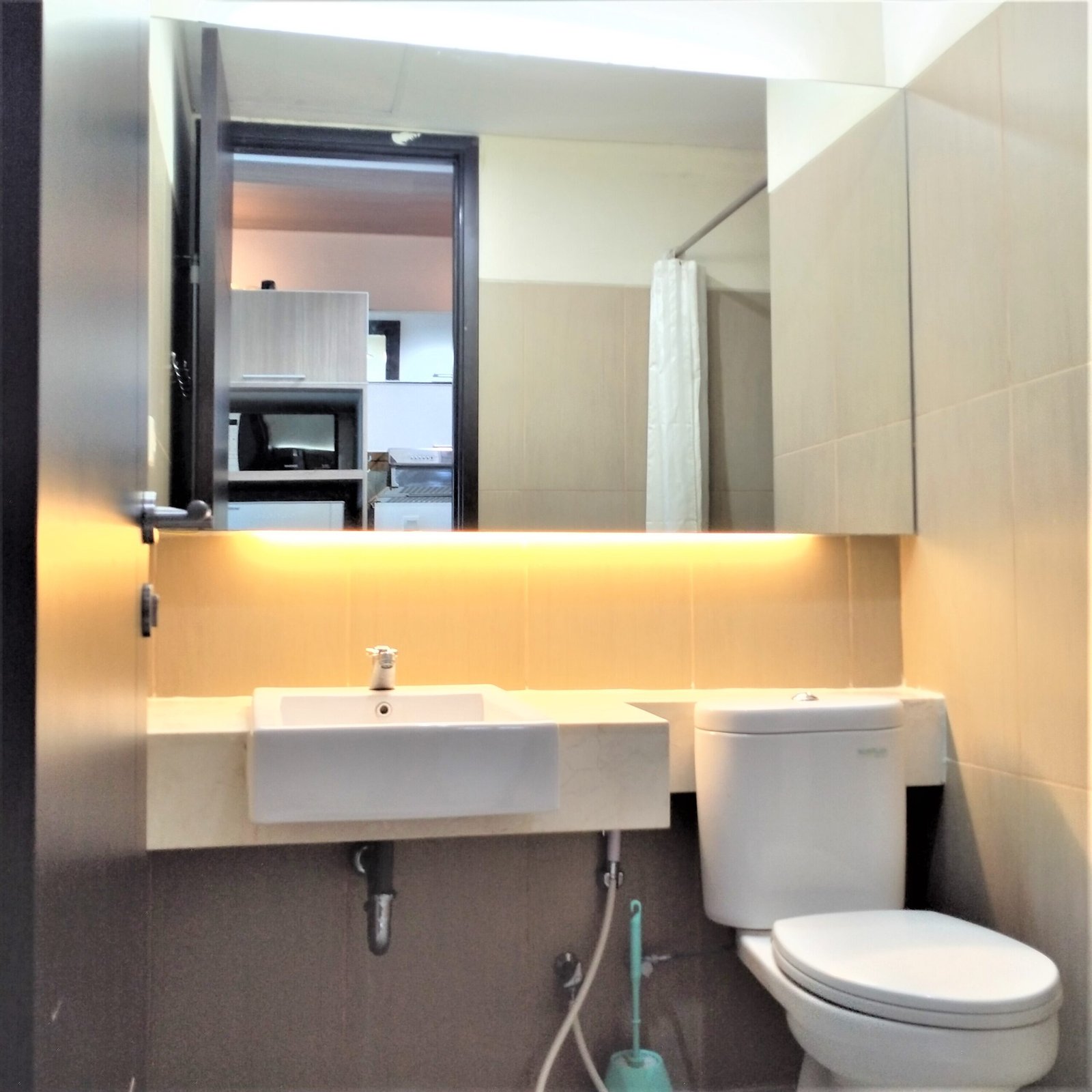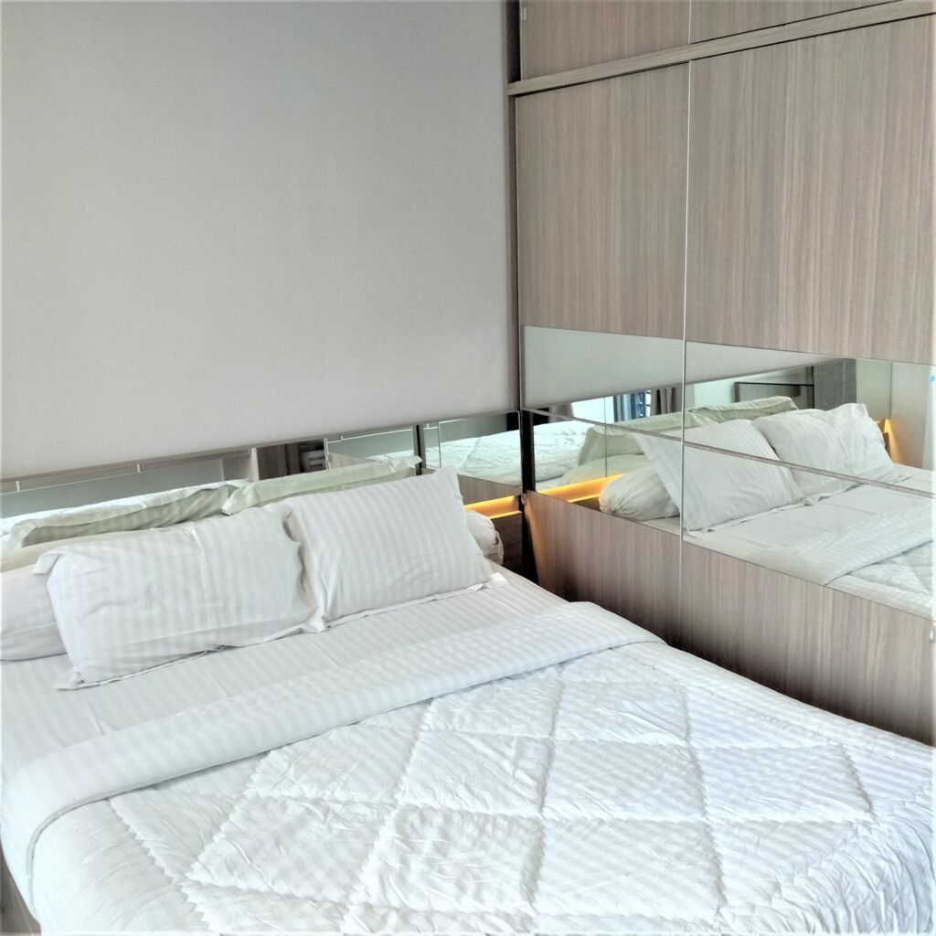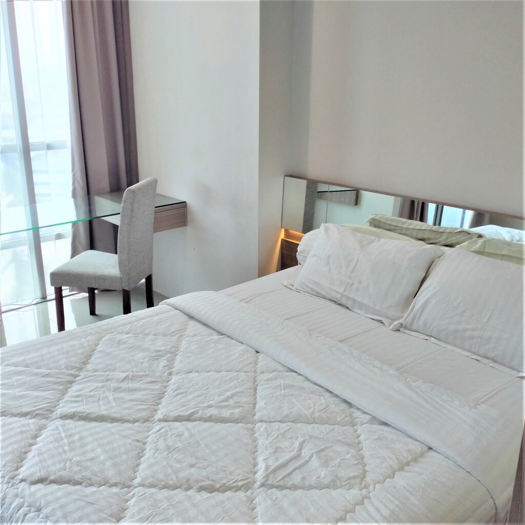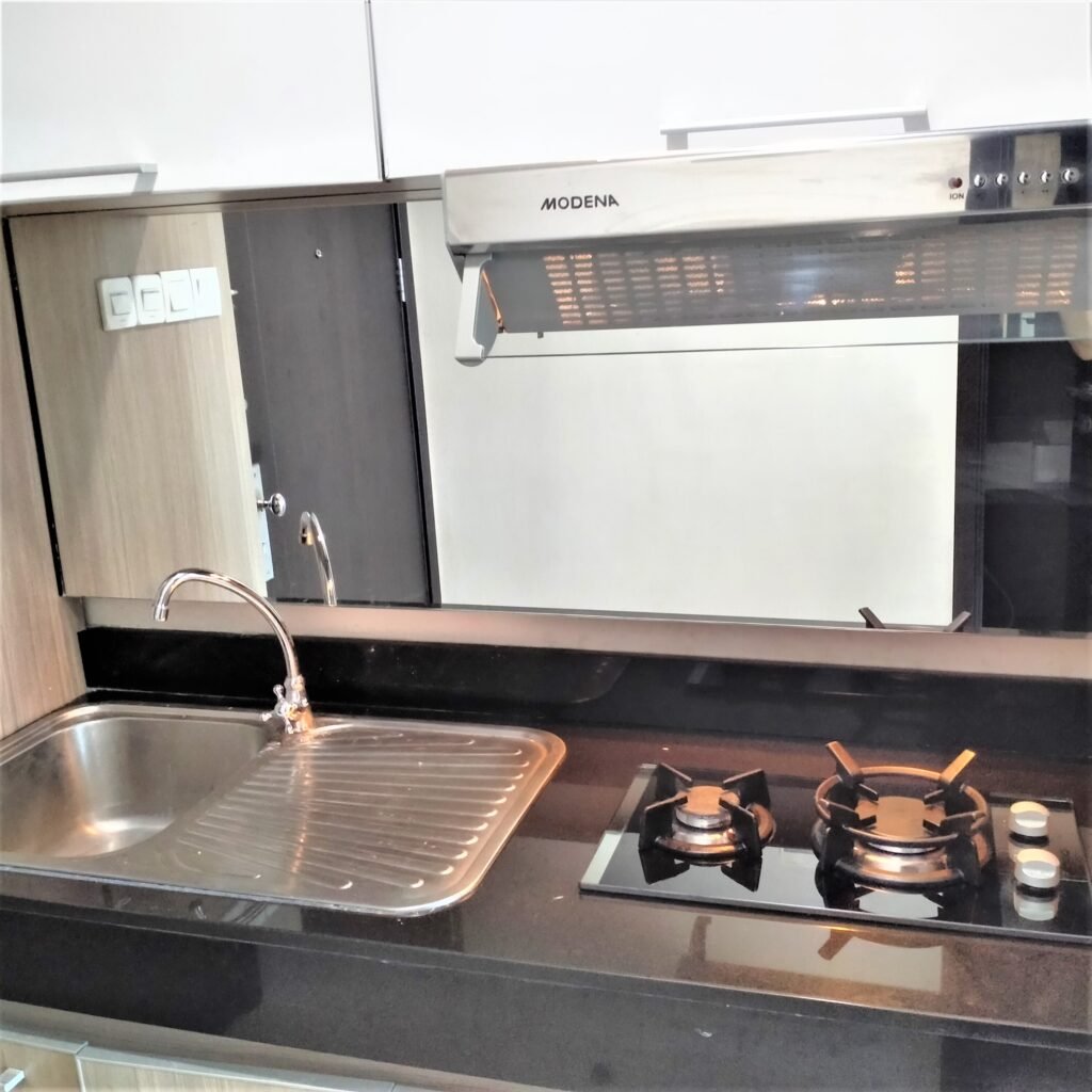 Kamar tidur yang nyaman di desain minimalis sederhana lengkap dengan furnitur, kamar mandi yang bersih, dan juga dapur yang bersih lengkap dengan furnitur. Ada TV, AC, Kulkas, Water Dispenser, Microwave