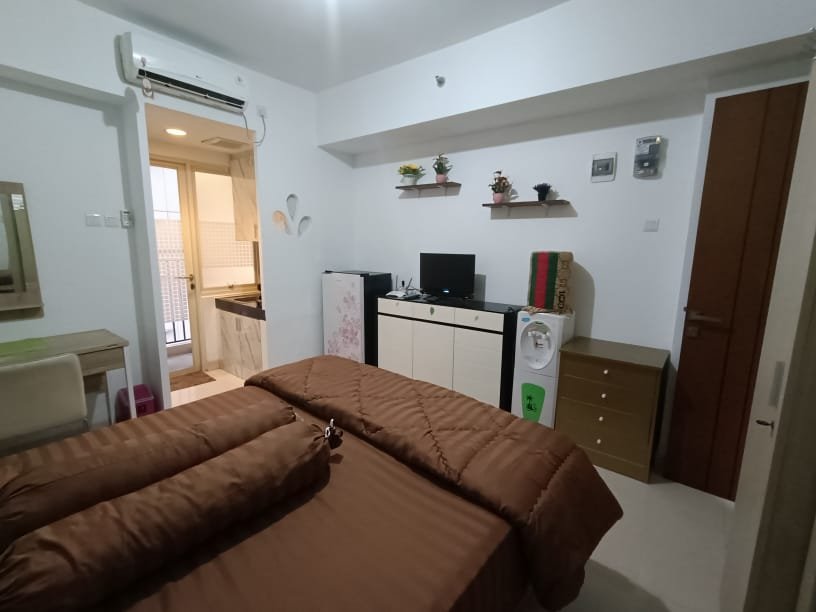 Water Heater, AC, TV, Rak TV, Kitchen Set, Kulkas, Meja Rias, Lemari Jumbo & Lemari Kecil, Kasur Uk 160×200 & Dispenser Tinggi